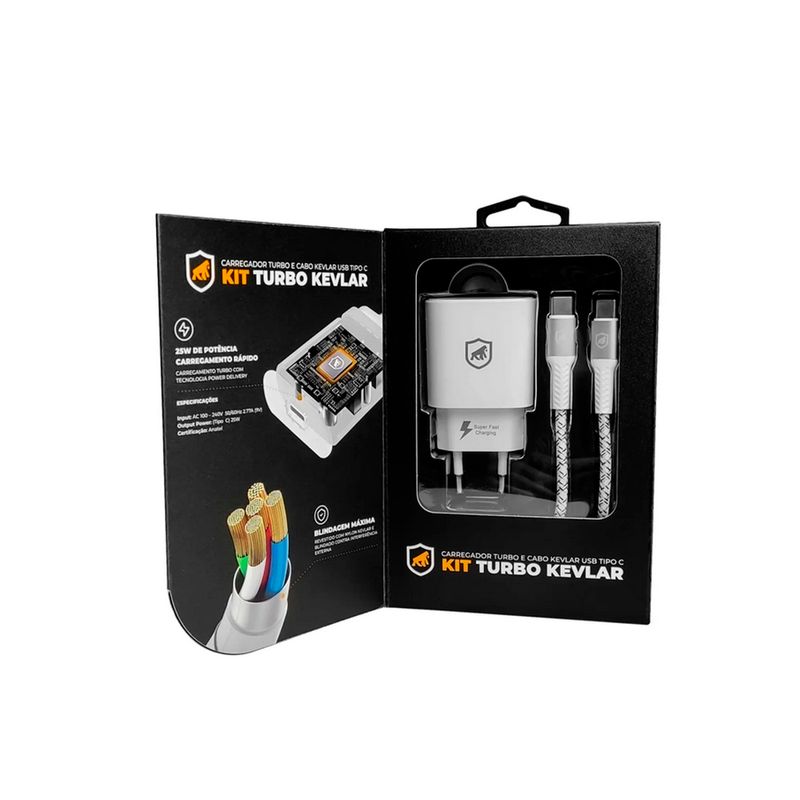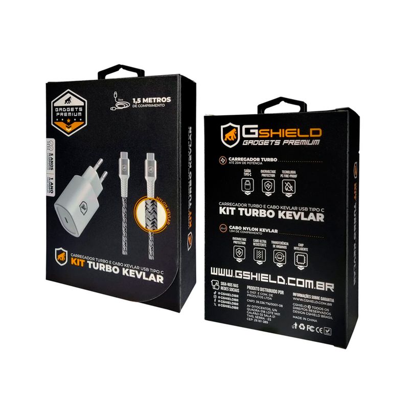 Experimente a praticidade definitiva em carregamento com o Kit Carregador Turbo Tipo C + Cabo Nylon Kevlar da Gshield, combinando desempenho excepcional, durabilidade incomparável e conveniência sem igual.